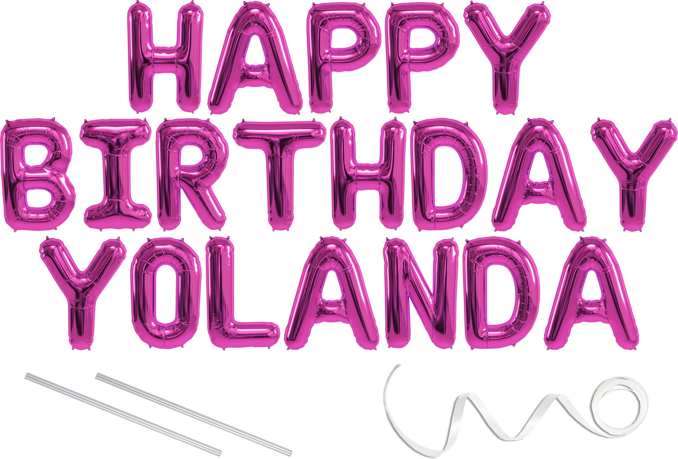 Yolanda, Happy Birthday Mylar Balloon Banner Pink 16 inch Letters