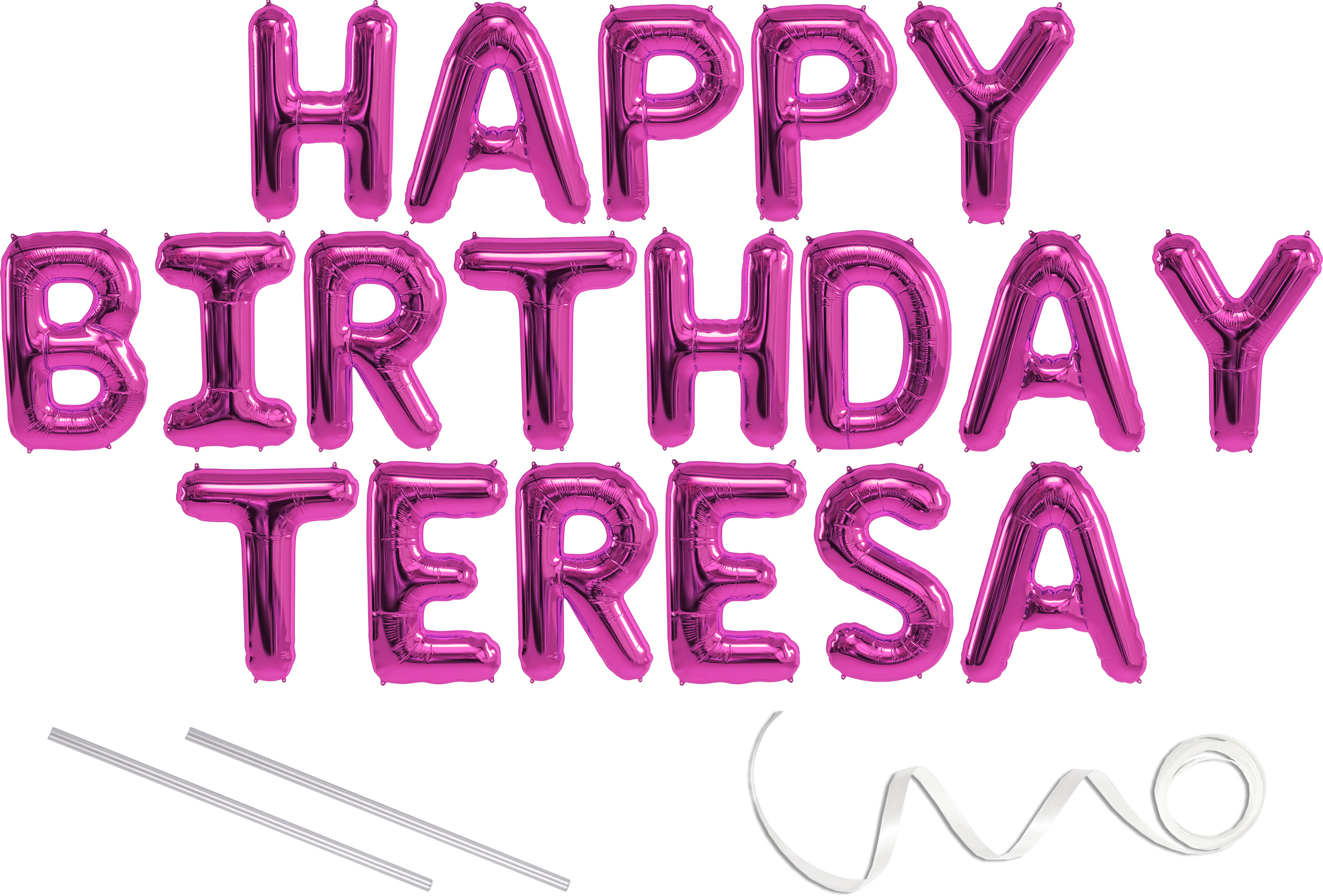Teresa, Happy Birthday Mylar Balloon Banner Pink 16 inch Letters