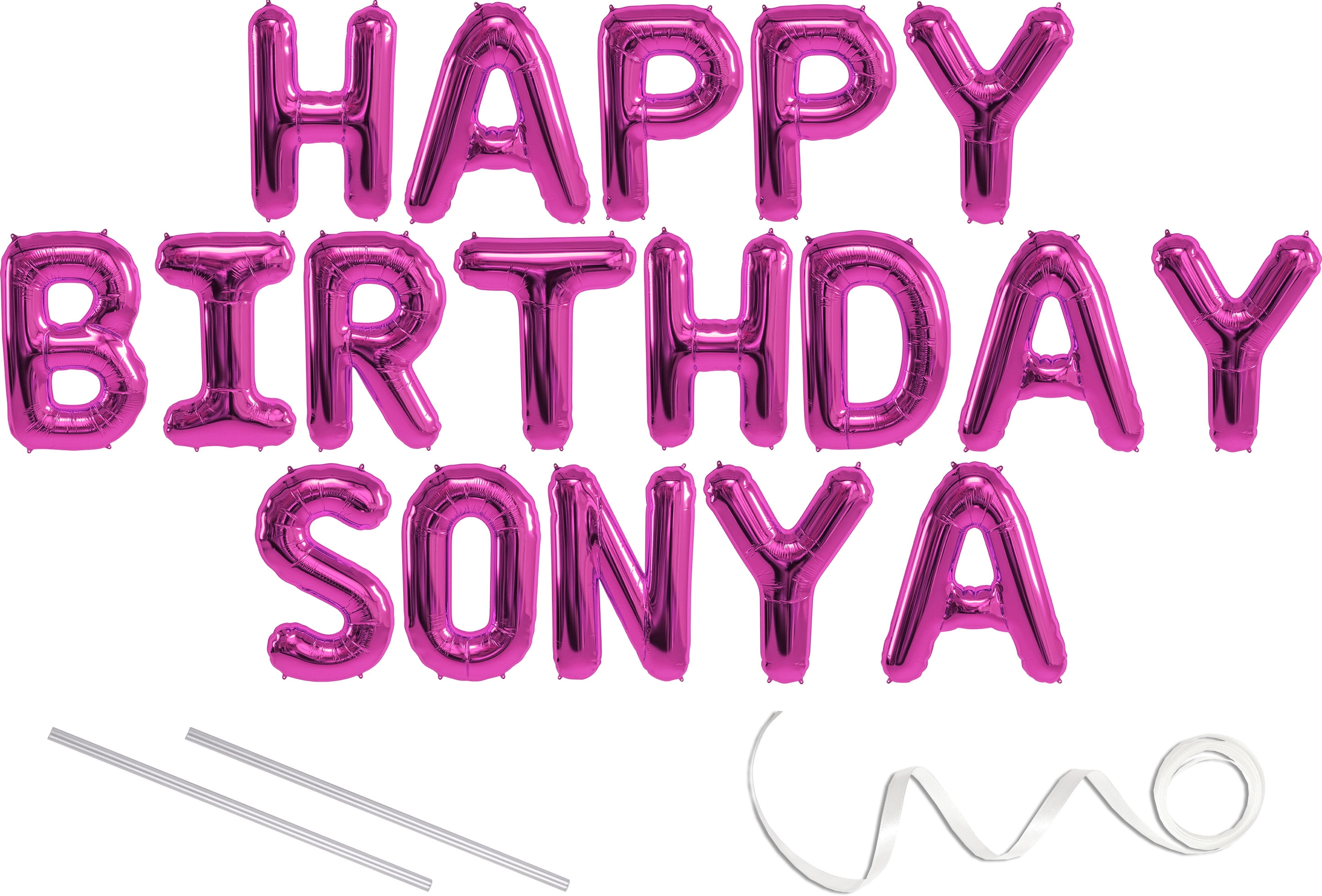 Sonya, Happy Birthday Mylar Balloon Banner Pink 16 inch Letters