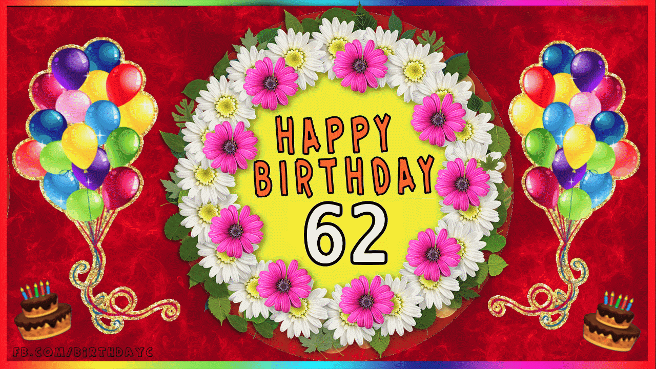 62th Birthday Images, Gif, Greetings Cards for age 62 years
