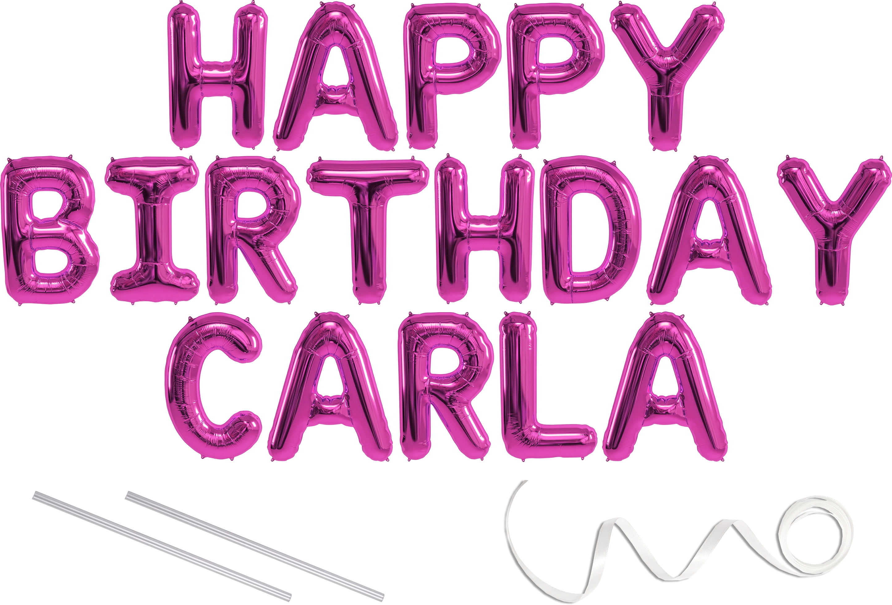 Carla, Happy Birthday Mylar Balloon Banner Pink 16 inch Letters