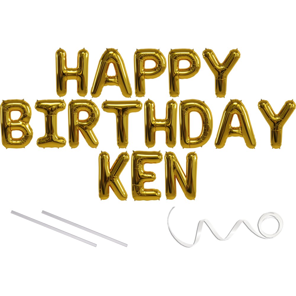 Ken, Happy Birthday Mylar Balloon Banner Gold 16 inch Letters