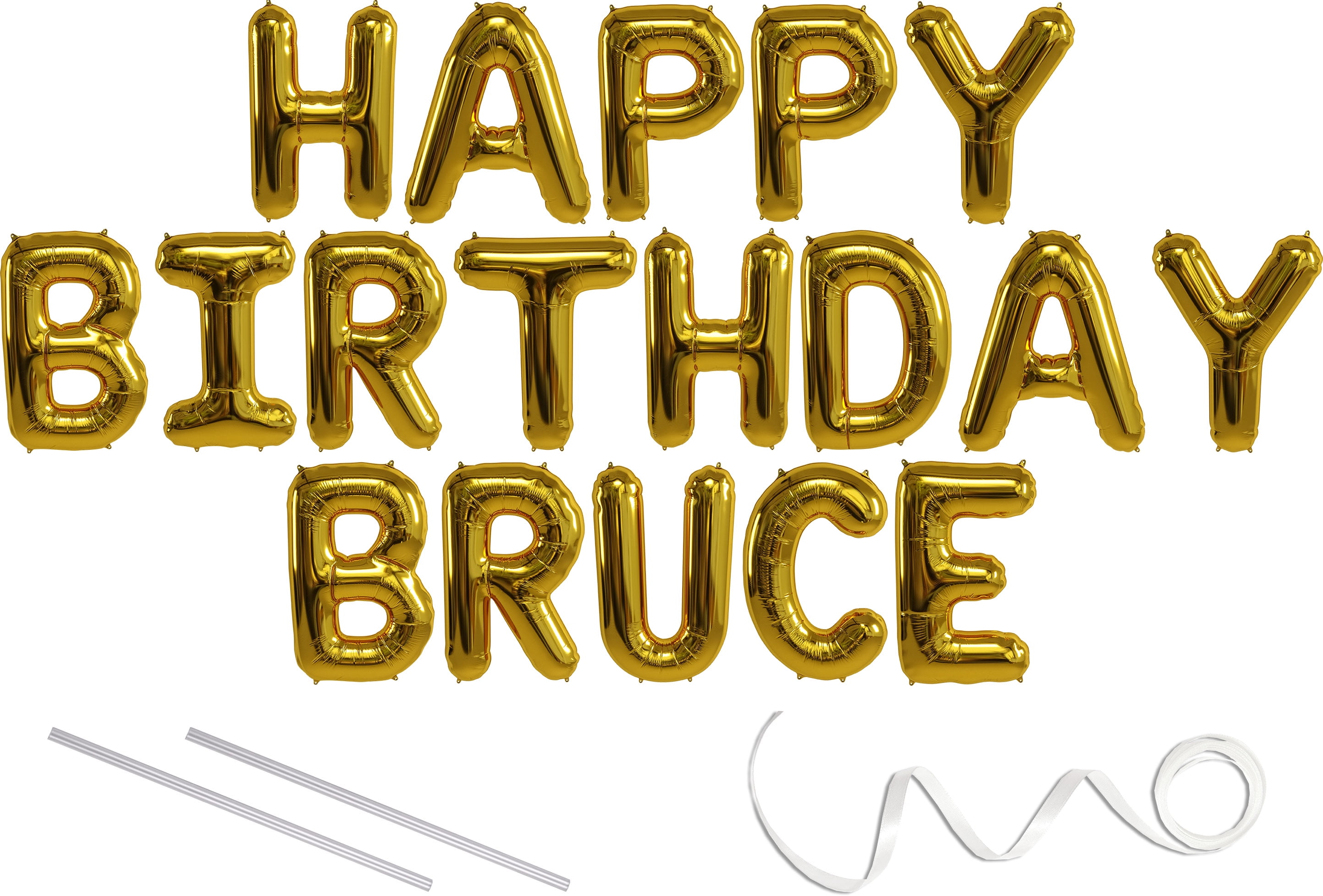 Bruce, Happy Birthday Mylar Balloon Banner Gold 16 inch Letters
