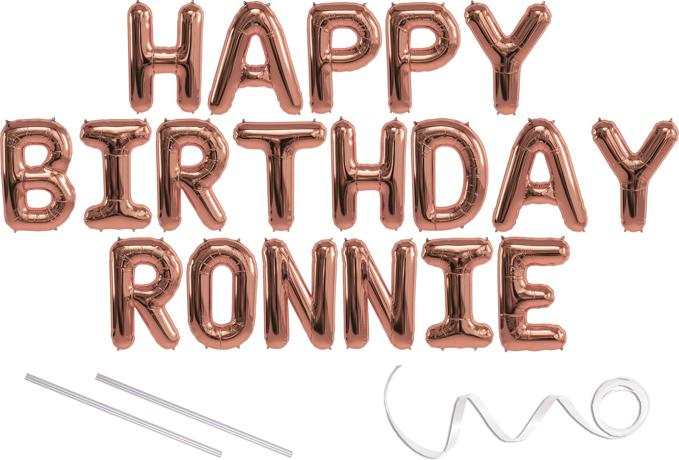 Ronnie, Happy Birthday Mylar Balloon Banner Rose Gold 16 inch